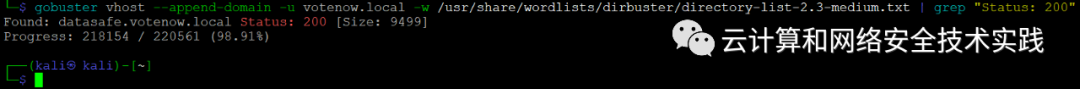 gobuster vhost --append-domain -u votenow.local -w /usr/share/wordlists/dirbuster/directory-list-2.3-medium.txt | grep "Status: 200"