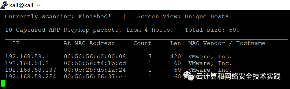用workstation导入,做地址扫描,sudo netdiscover -r 192.168.58.0/24,