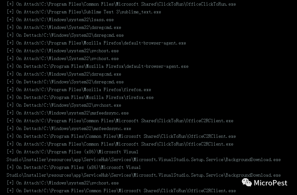 如果我们用跟踪attach/detach事件的虚假DLL路径修改这个注册表项,我们就可以看到DLL是如何开始为每个尝试连接到Internet的新进程逐渐加载的。