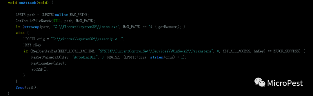在这里,作者给出了绕过原理就是“调用AddSecurityPackage函数来让LSASS进程主动加载我们的DLL文件,而在DLL加载后会直接DUMP自己宿主进程LSASS的内存,以此来成功绕过杀软的限制”。