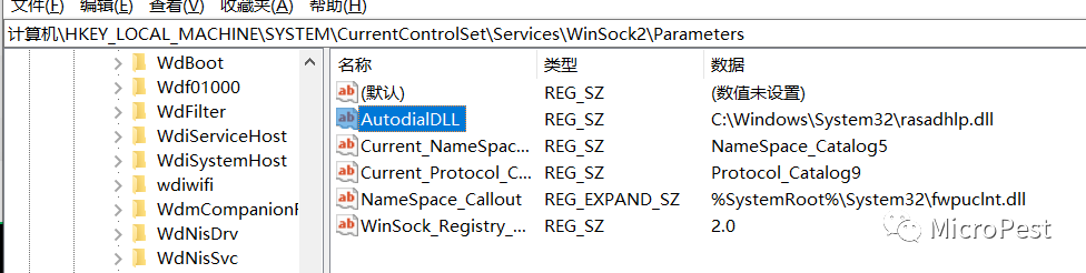 当进程使用WinSock2库时,该进程还会加载其他附加DLL以提供不同 WinSock2 服务提供者的功能。AutodialDLL子项定义的DLL 是这些可以加载的“额外”DLL 之一。默认情况下,此项设置为c:\windows\system32\rasadhlp.dll。