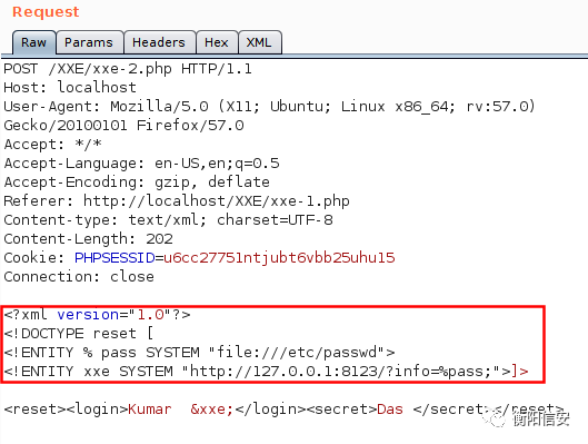 以下图像(快照2和3)显示URL包含在XXE payload中。提交HTTP请求后,服务器会对攻击者控制的服务器进行额外调用。因此,