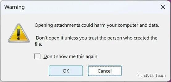 在CVE-2022-41091的安全补丁更新后,Windows会将MoTW标记传播到ISO中包含的所有内容并在文件打开时显示安全警告,这意味着用ISO等非NTFS格式文件打包恶意宏文档进行投递以规避MoTW标记的方式基本失效。近期,攻击者开始转向利用OneNote笔记文件(.one)来进行恶意载荷的分发,利用.one文件搭载WSF文件诱导受害者执行,使之成为宏文档的替代方式。本文将围绕其中的技术细节进行分析研判。