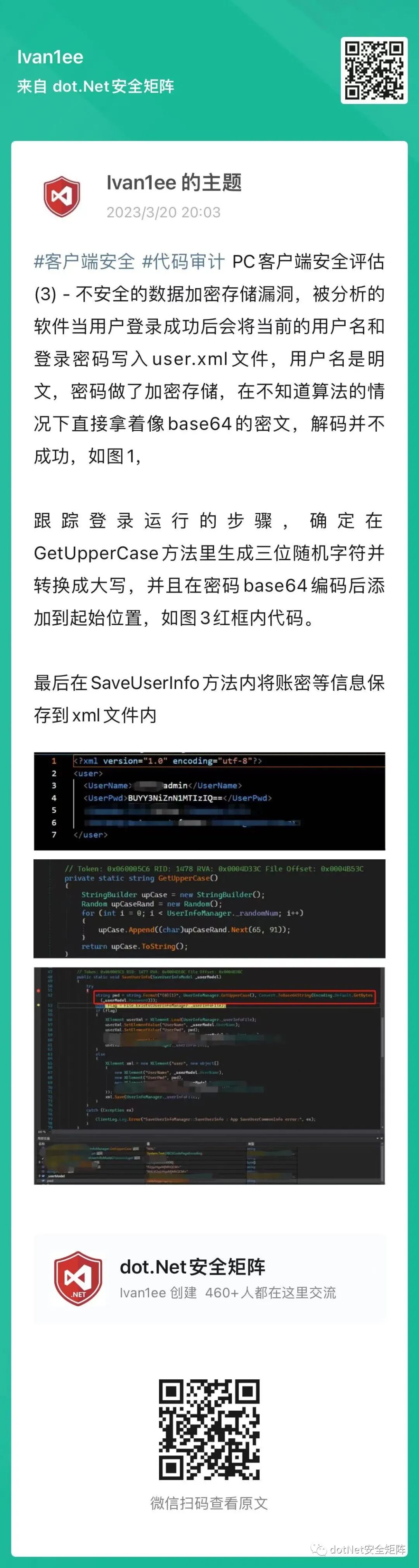 大概的场景是这样的被分析的软件当用户登录成功后会将当前的用户名和登录密码写入user.xml文件,用户名是明文,密码做了加密存储,在不知道算法的情况下直接拿着像base64的密文,解码并不成功