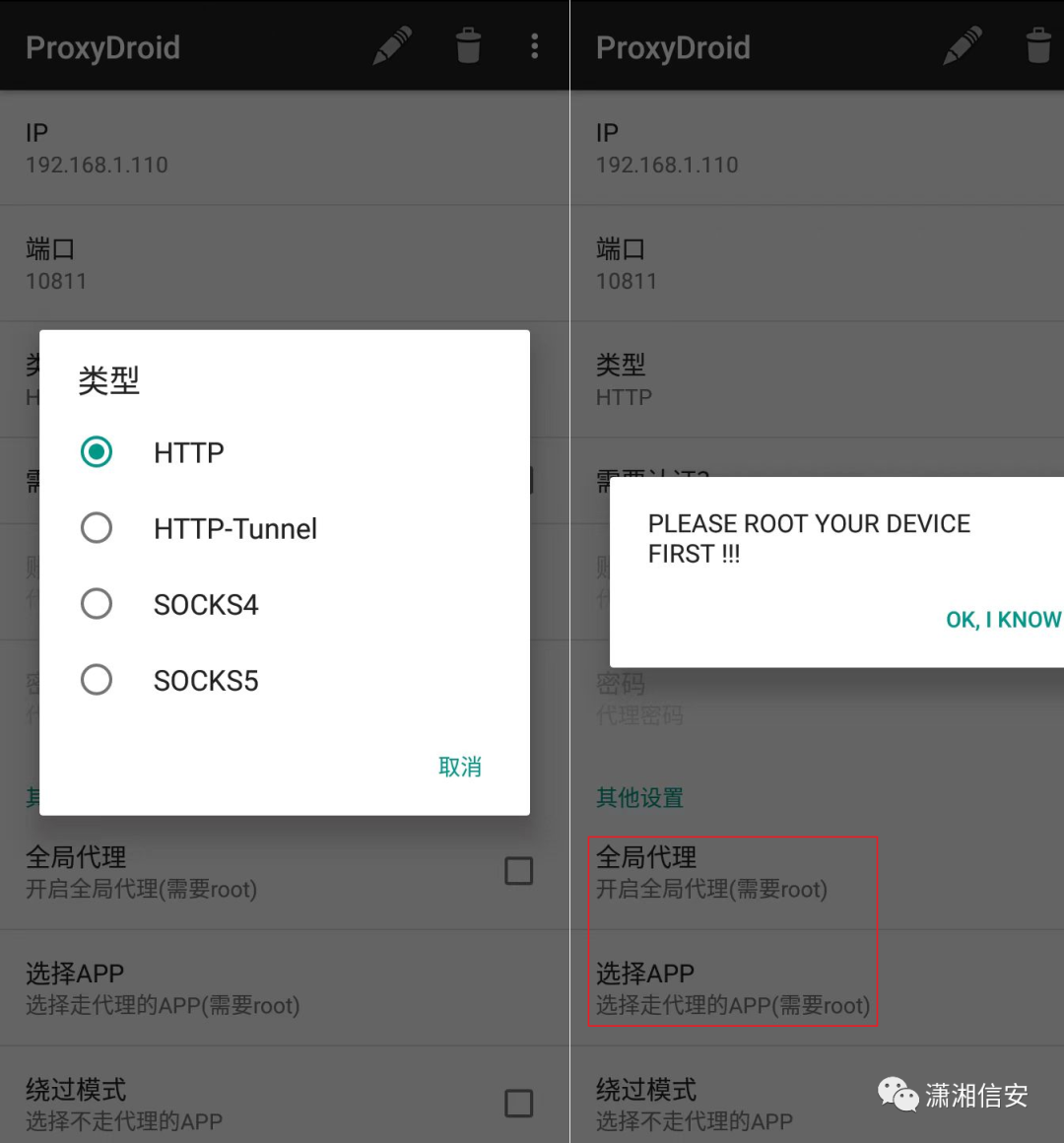 找到一个安卓APP(ProxyDroid)可以设置HTTP/SOCKS4/SOCKS5代理,但是在开启全局代理时发现需要root...,我这台测试机不行,大家自己测试下吧,IOS因限制问题可能不太好找...。