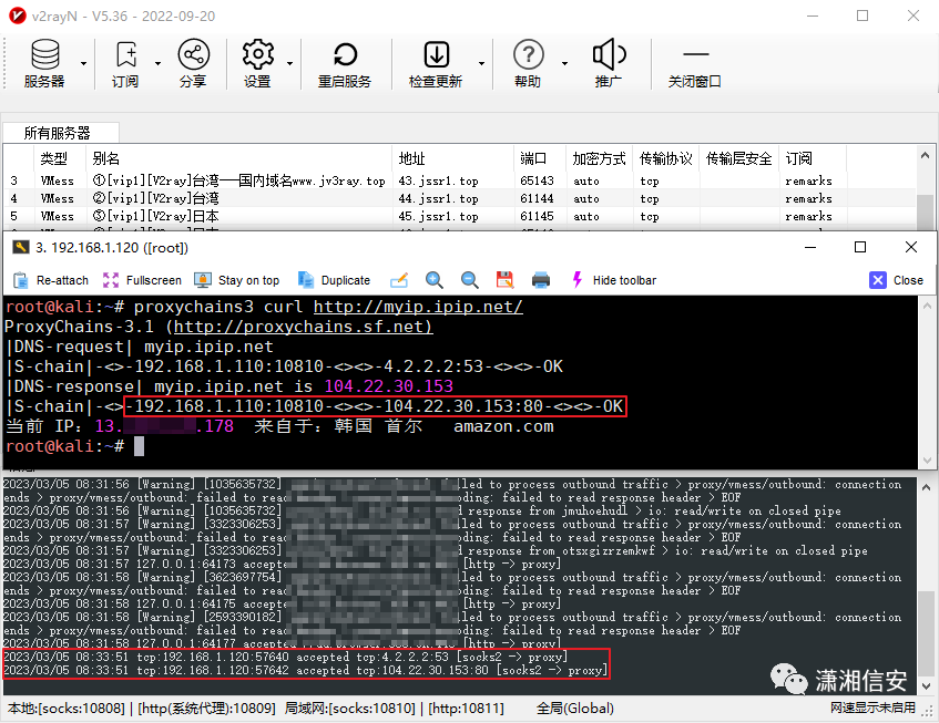 项目地址:https://github.com/rofl0r/proxychains-ng这时可以先用curl命令来确定这个socks5代理是否连接成功,如果没问题再用ProxyChains代理各种常用工具进行安全测试,如:firefox、msf、nmap、sqlmap等,走的都是物理机代理流量。