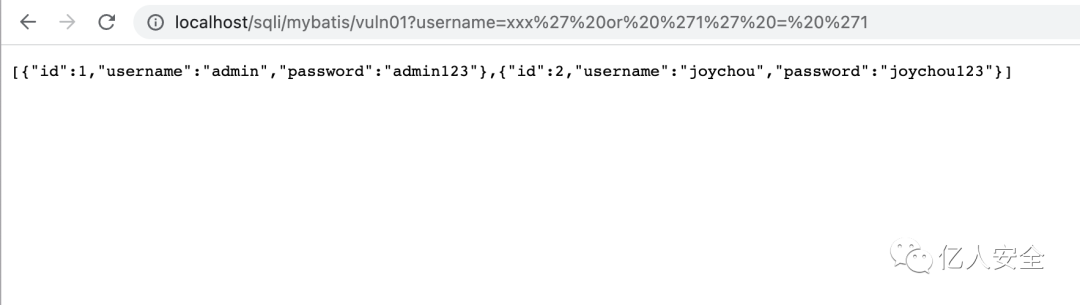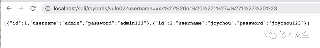 http://localhost/sqli/mybatis/vuln02?username=xxx' or '1'='1' %23