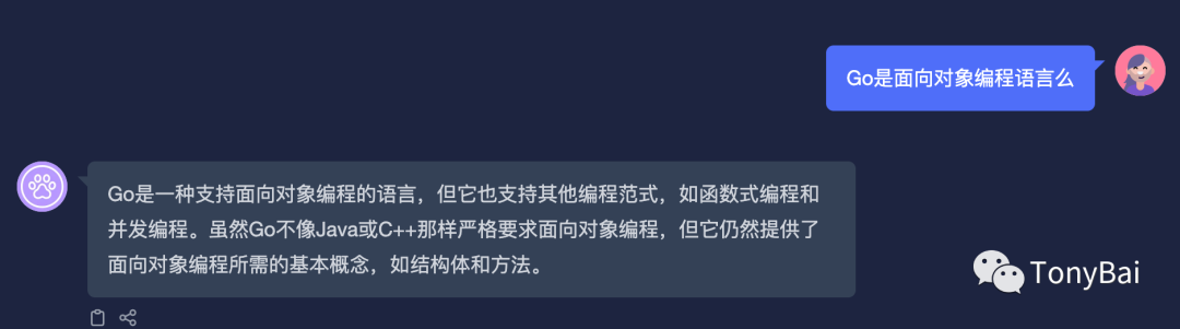 ChatGPT认为:Go支持面向对象,提供了对面向对象范式基本概念的支持,但支持的手段却并不是类与对象。
