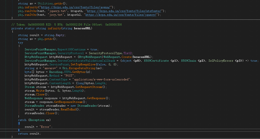 然后获取杀软信息,与字符串“anvaro=”拼接后以POST方式上传至https://kcps.edu.in/css/fonts/files/avena/。
