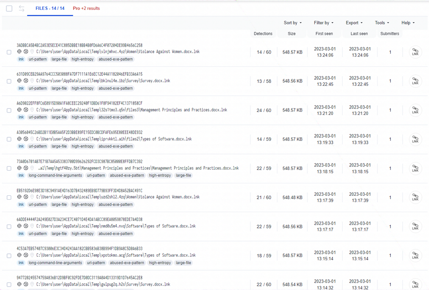 另外扩展分析时,我们还发现了Sidecopy组织近期使用lnk文件进行攻击的大量样本。