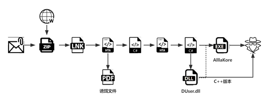 鱼叉式钓鱼邮件,以压缩包中的lnk文件为攻击入口点;