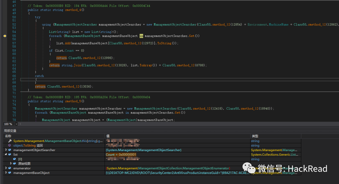 首先查看文件的信息,发现是.NET写的32位程序,拖进dnspy发现存在混淆,使用de4dot经过多次解混淆之后查看该文件: