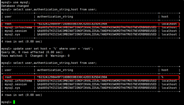 进入数据库后,需要对连接访问权限进行修改,并对root用户重置密码。