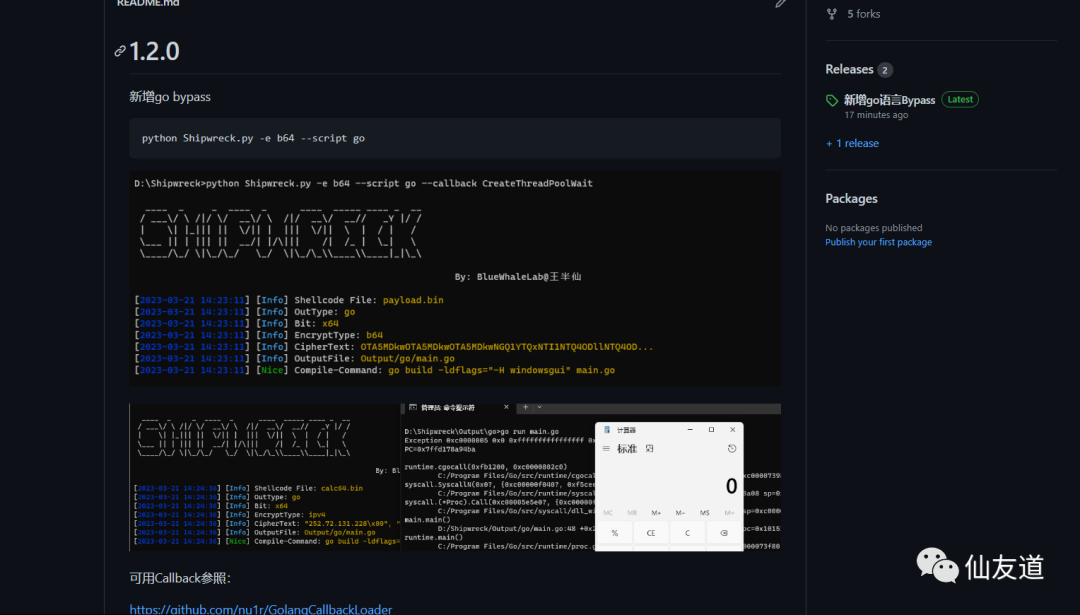 工具更新Shipwreck参考https://github.com/nu1r/GolangCallbackLoader将go语言callback集成到Shipwreck中