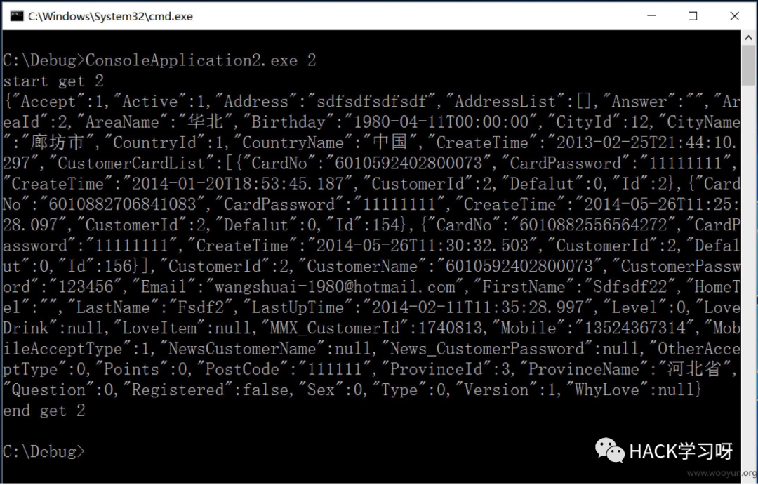 svcutil.exe http://180.153.48.178:803/Service1.svc?wsdl#4 利用,直接获取customerID 为 2 的用户信息(这里只是测试环境的数据,后面会介绍如何找到真实环境)