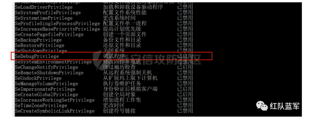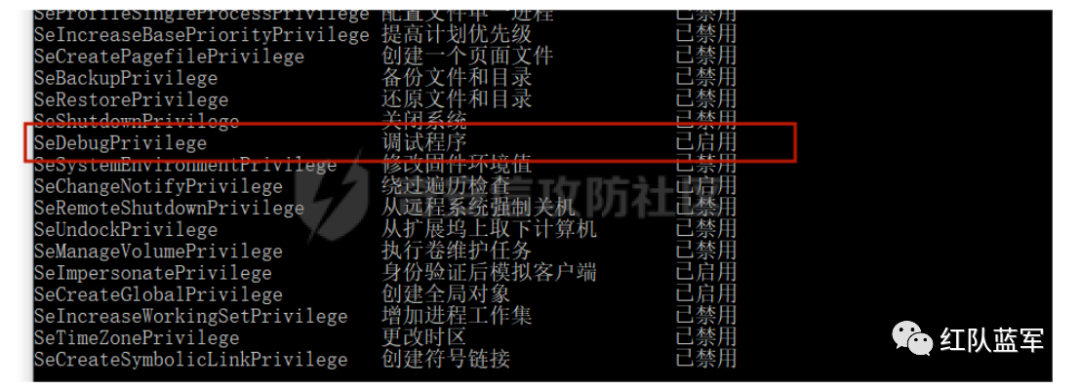 SeDebugPrivilege是调试权限的程序,开启了这个特权之后可以可以读写system启动的进程的内存,很显然我们想要dump或者OpenProcess下lsass.exe 进程,那么肯定需要SeDebugPrivilege权限