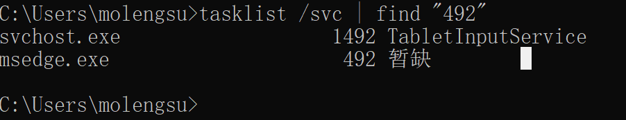 tasklist /svc | find "PID" 查看具体PID进程对应的程序
