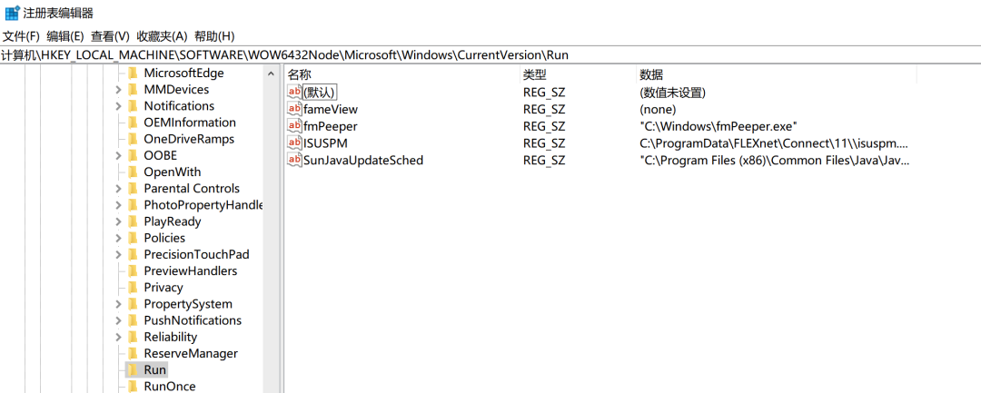计算机\HKEY_LOCAL_MACHINE\SOFTWARE\WOW6432Node\Microsoft\Windows\CurrentVersion\Run