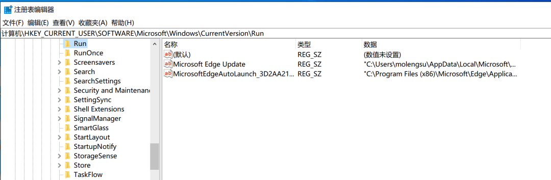 计算机\HKEY_CURRENT_USER\SOFTWARE\Microsoft\Windows\CurrentVersion\Run