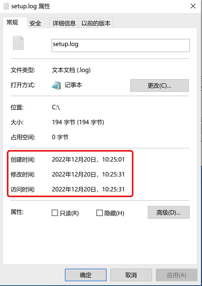 如果文件的修改时间早于创建时间这个文件存在可疑,异常的时间很有可能是攻击者进行恶意修改的不正常文件。