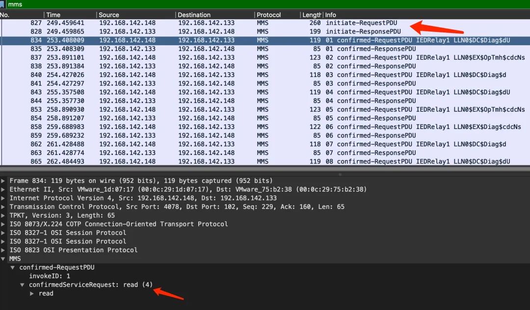 1. 1. 根据题目名称过滤出MMS数据包,发现前两个包为请求握手,观察第三个包发现read为4