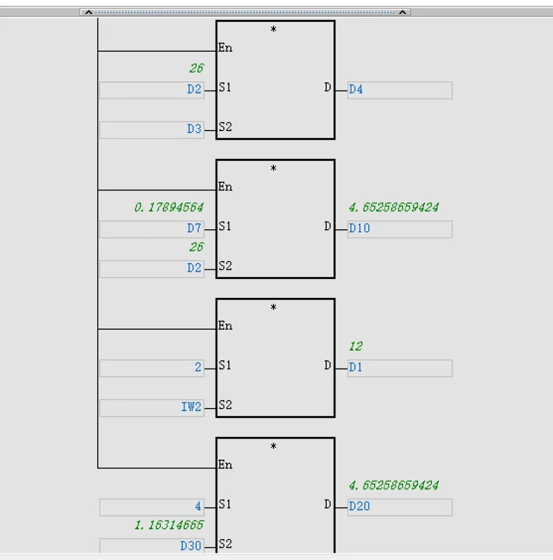 1、需要熟悉常用的算数运算、位运算、逻辑运算。 2、了解计算机各类型数据的存储方式,如整数型、实数型、逻辑型。 3、了解类型转换时强制转换和等价转换的区别。 4、稍微了解梯形图中的一些常见元器件的含义,如开关。 5、安装常用的仿真软件,如博图、西门子、autothink、ispsoft等。 算数运算: 加+ADD、减-SUB、乘*MUL、除/DIV、余%MOD 开方SQRT 正弦SIN、余弦COS、正切TAN、余切COT、正割SEC、余割CSC 反正弦ASIN/ARCSIN、反余弦ACOS/ARCSIN、反正切ATAN/ARCTAN、反余切ACOT/ARCCOT、反正割ASEC/ARCSEC、反余割ACSC/ARCCSC 位运算 反~NOT 、 与&AND 、 或|OR 、 异或^XOR 逻辑运算 大于> 、 小于< 、 等于= 、大于等于 >= 、 小于等于<= 、 不等于!=/<>