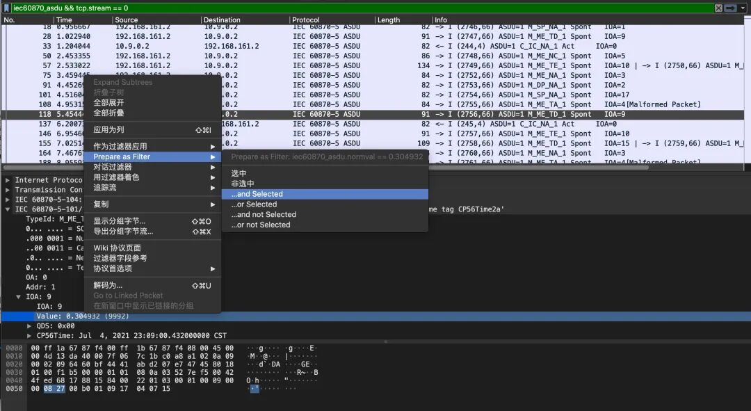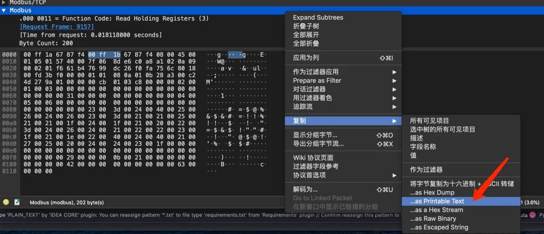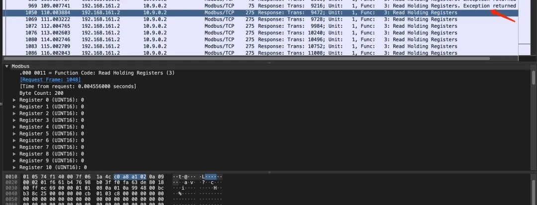 1. 1. 首先依次筛选常见功能码,筛选到功能码为3的返回包:可以选择筛选返回包中的来源ip地址,来筛选出response包