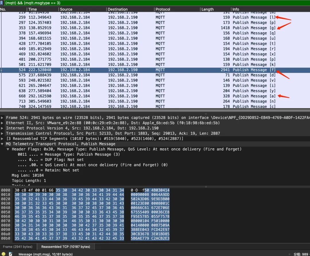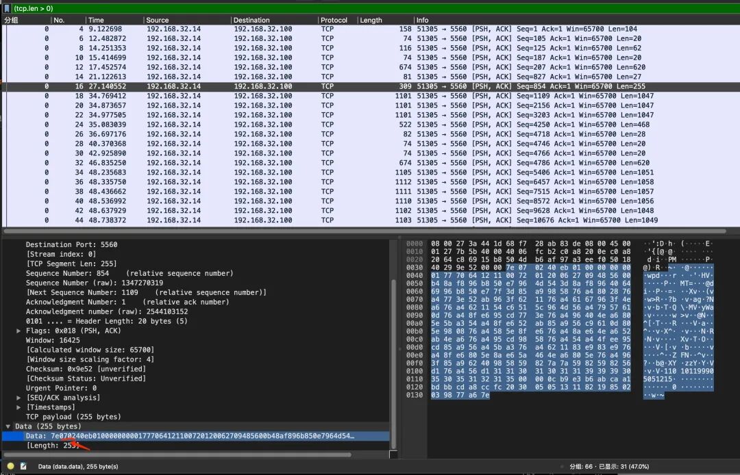 3、删除后发现开头的数据和010对应,都为FRAME的数据。然后to hex转成16进制,提取16进制中private_bit对应的字节
