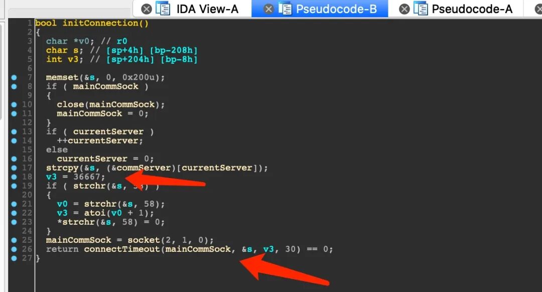 继续追踪发现v3=36667 在return处返回连接请求的域名+端口。所以端口为36667