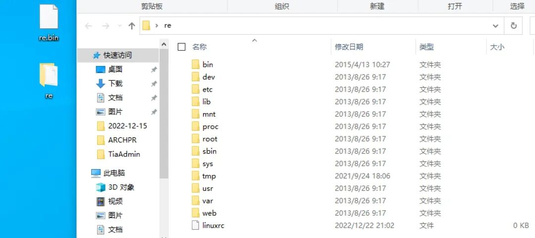 题目为bin文件,使用7zip打开解压该文件,发现为固件包目录