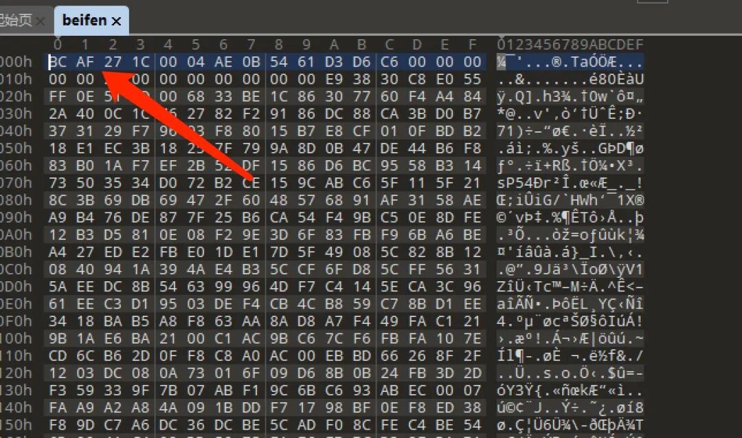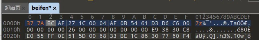 将解压后的文件放入010,发现BCAF271C的头为疑似为7z文件
