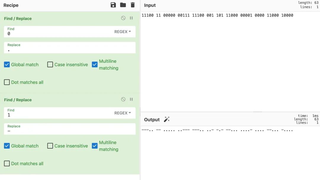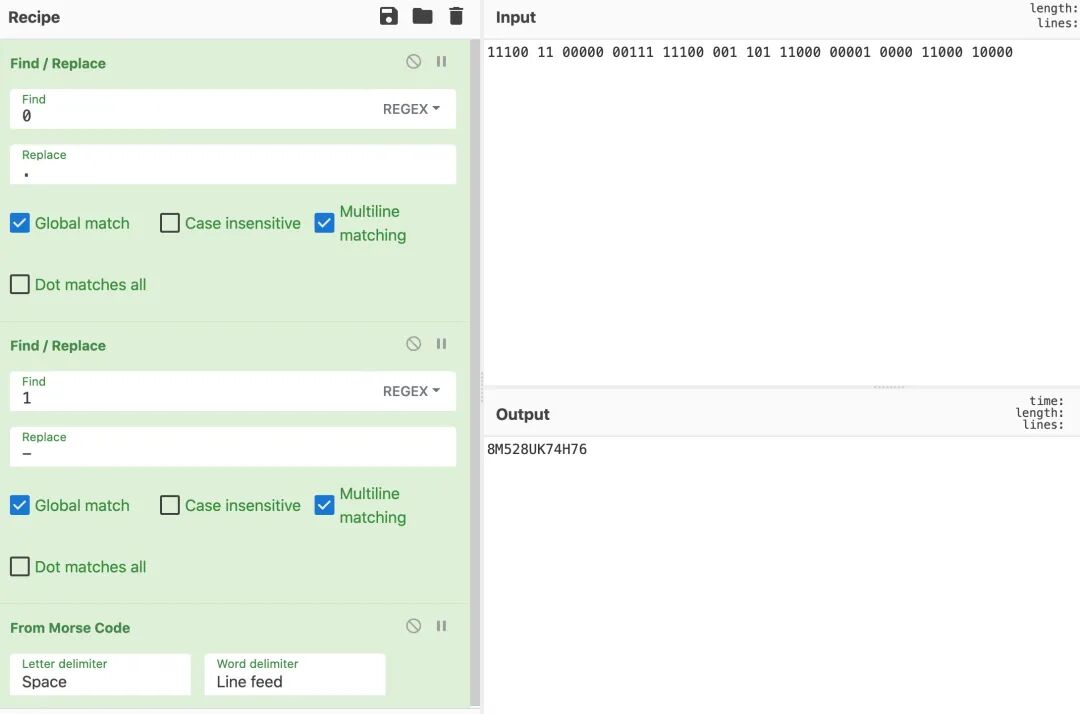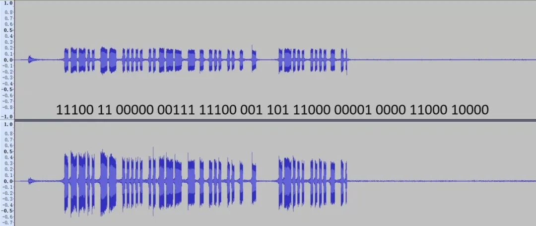 听出是发电报的声音,分析为莫斯电码。将波形转成0和1