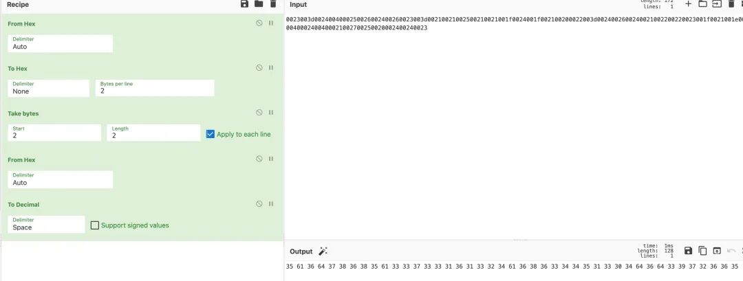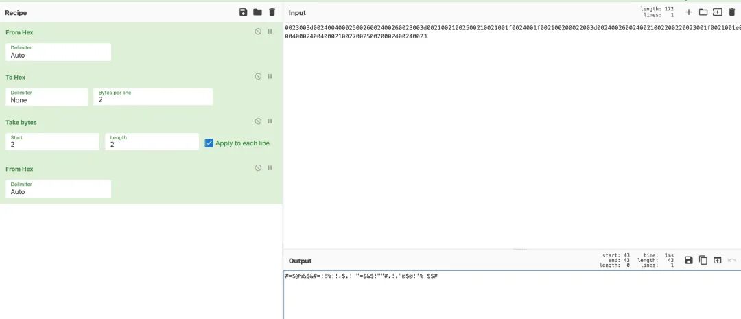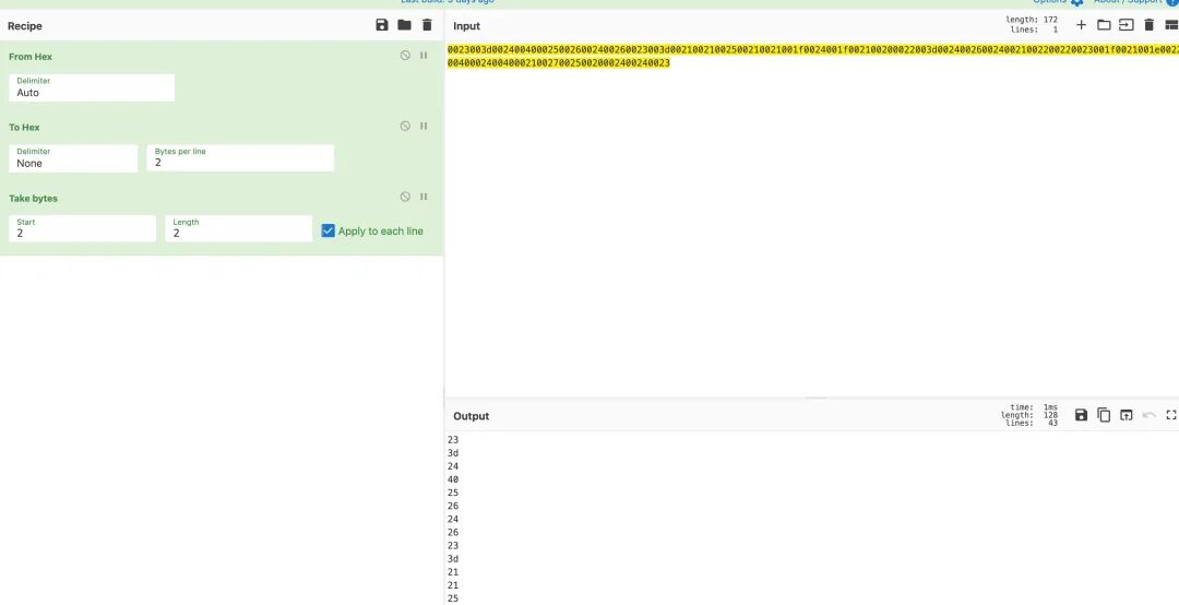 第三步:使用take bytes将字节取不是00的第二位 并设置为一行2个
