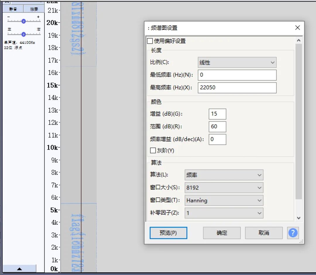 看起来比较模糊,可以使用频谱图设置更改参数,获取较为清晰的flag