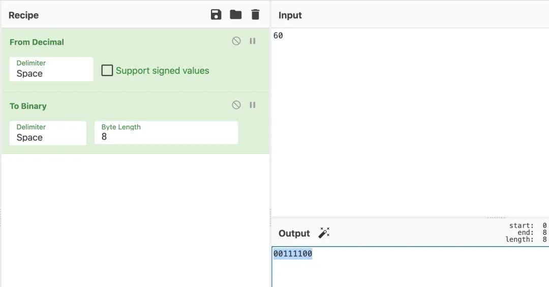 v12= v11整数到字节 = 60 = 00111100 v10= v12取反字节 = 11000011 v9= v10字节到整数 = 195-256 = -61 v7= v9-v8 = -61-(-1)= -60 v6= v7/v1 = -60/30 = -2
