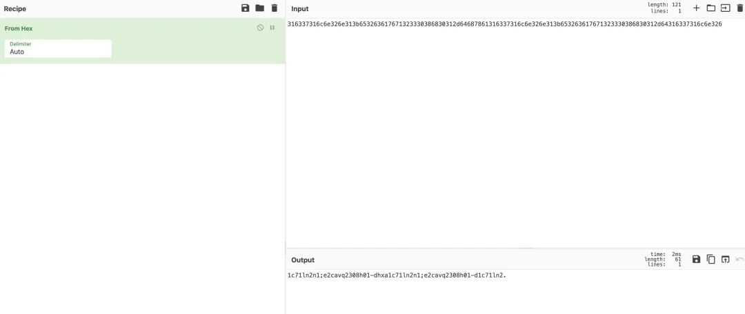 但是发现复制的值中间有欠缺,所以复制hex16进制,然后找过字符的开头和结尾进行去除,然后转码