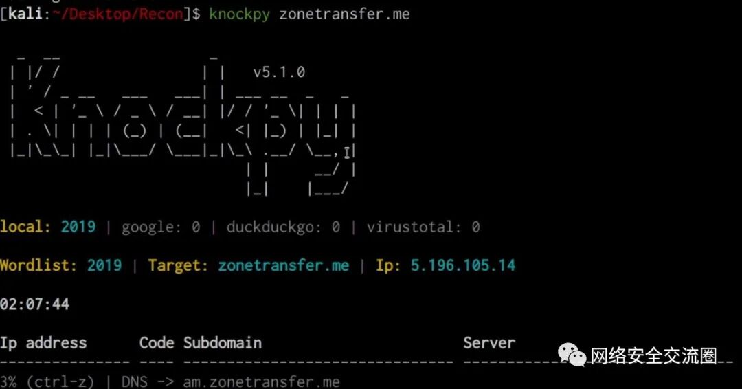 我们可以通过运行以下命令来枚举Knockpy的子域: