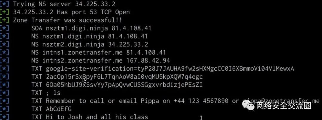 如果成功,我们将获得与目标域关联的所有DNS记录的完整副本,包括在我们之前的检查中可能被隐藏的记录。