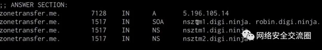 我们可以通过运行以下命令来执行与激烈的DNS区域转移: