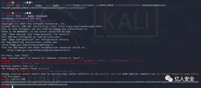 目的明确,思路清晰,之后我就拉了一个pwndocker的镜像,开始gdb调试,直接cyclic生成一大串字符,输入,然后程序就会报错,