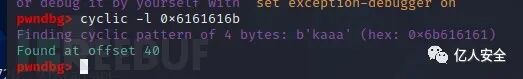 然后通过cyclic就可以计算出缓冲区到返回地址的距离为40