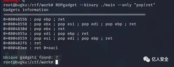 看一下gadget,因为要用到write函数,并给它传参,参数压栈后肯定是需要出栈的,pop出wirte的三个参数,最后ret回到main函数的地址开始重新执行所以用倒数第三个