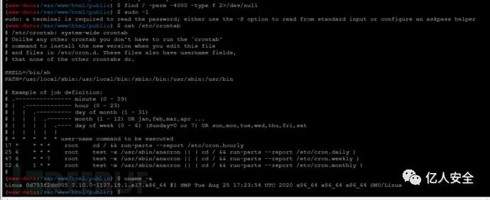根据上一个flag的提示,很明显是要提权,查找有suid权限的命令,没有;看一下sudo -l,再看看定时任务,以及操作系统和内核版本
