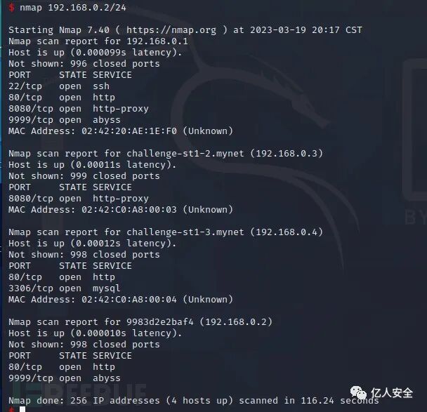 nmap直接扫一波(最好是将扫描结果保存到文件中,再从文件中读取结果),结果发现有四台机子