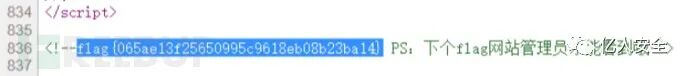 先上御剑扫着,碰上这种站点,咱先熟悉一下具体功能,随便点点,翻翻页面源代码,果不其然在页面底部看到了flag