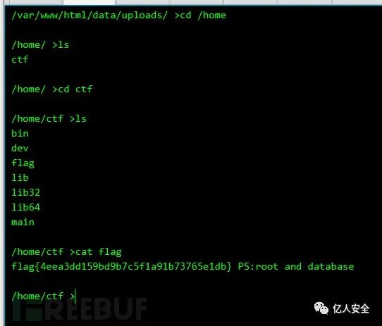 根据题目的提示还有上一个flag的提示,去home/ctf目录下找到了main文件