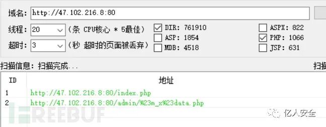 一个登录界面,老样子先扫目录,我翻翻页面源代码,试试弱口令,未果,最后看了一下御剑扫出来的结果